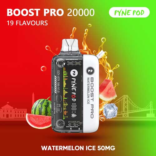 Pyne Pod Boost Pro 20000 Puffs. Elevate your vaping experience with the PYNE POD Boost Pro 20000 Puffs Disposable Vape, a cutting-edge device designed for ultimate satisfaction. This disposable vape features a robust 600mAh battery that charges to full capacity in just 30 minutes via USB-C, ensuring you’re always ready for a smooth vape session. With an impressive 15ml e-liquid capacity, it provides up to 20,000 puffs in standard mode and 10,000 puffs when using the turbo mode, which boosts vapor production and flavor intensity.