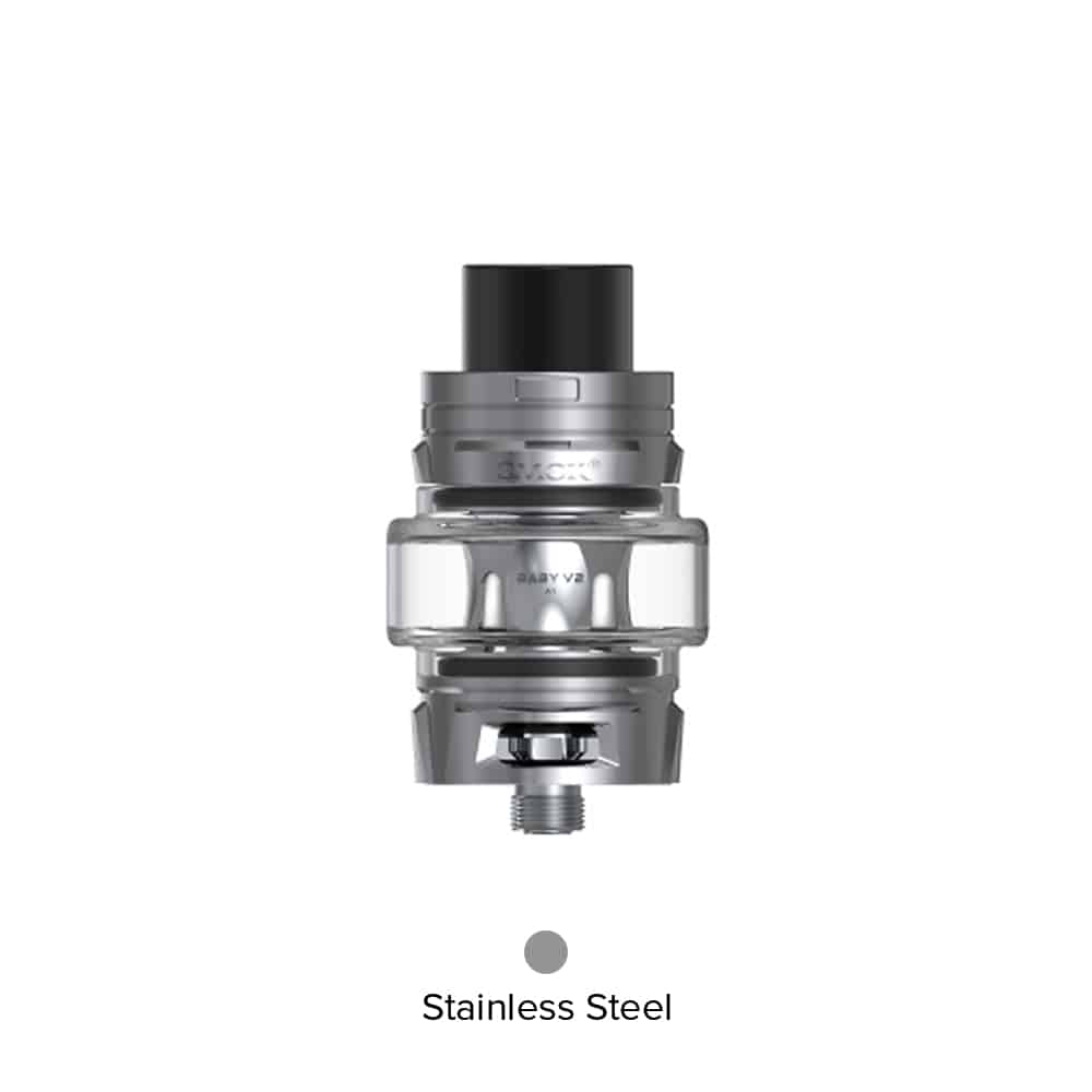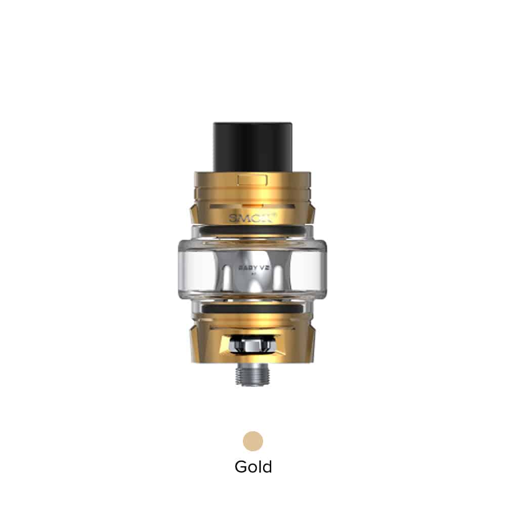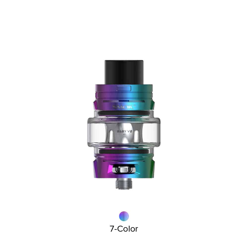 Smok TFV8 Baby V2 Tank is the latest upgraded version tank. “V” carved on the top cap and base is a symbol of a new version. With the bulb pyrex glass tube, the tank can hold 5ml liquid. Moreover, the tank is compatible with new cores Baby V2 A1, A2, and A3.